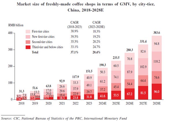 Similar to the tea market, China’s coffee market is also expected to grow rapidly, with above average growth forecasted to occur in 3rd Tier and below cities.